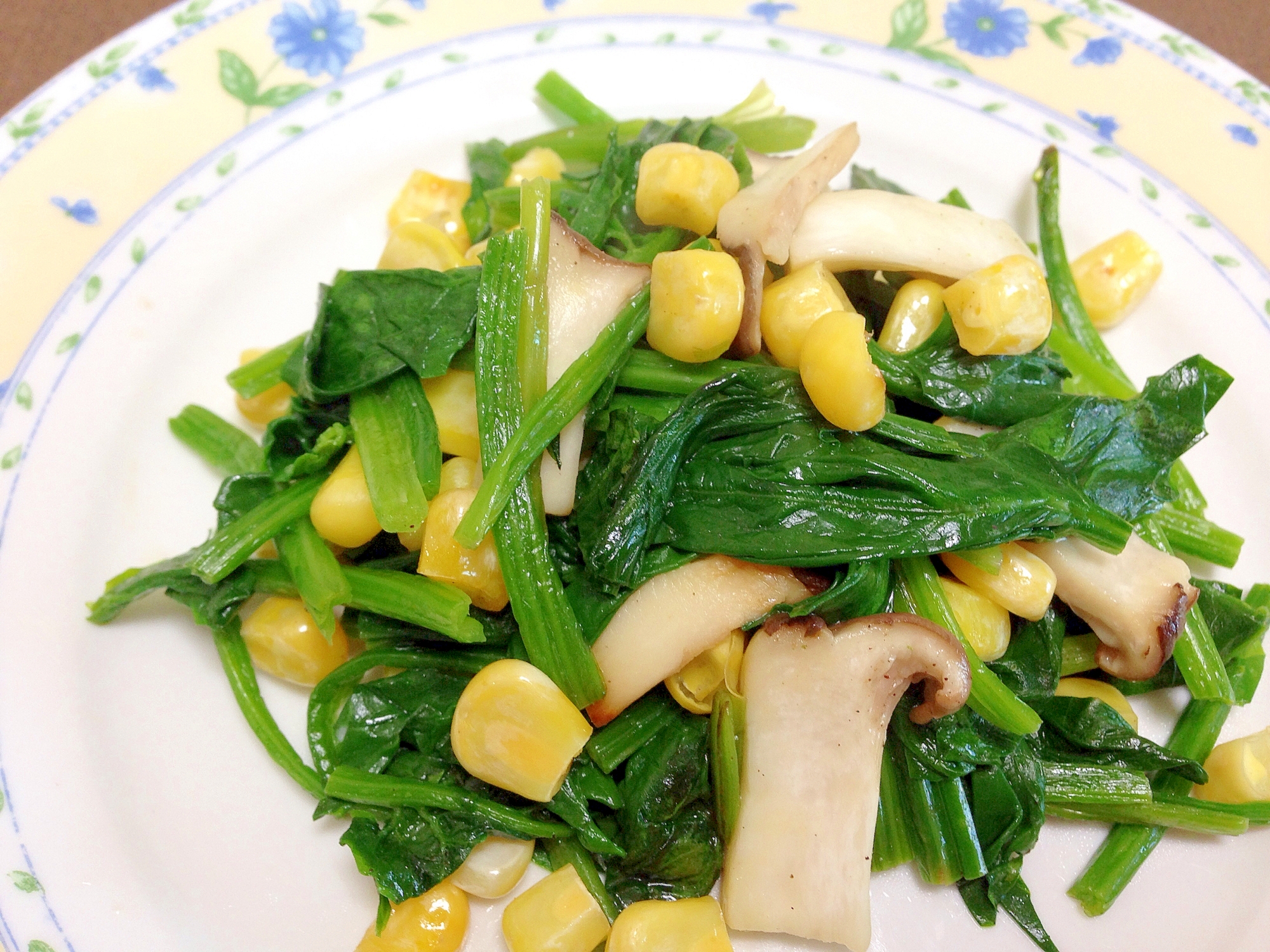 ほうれん草とエリンギコーンのマヨ醤油炒め レシピ 作り方 By Mint74 楽天レシピ