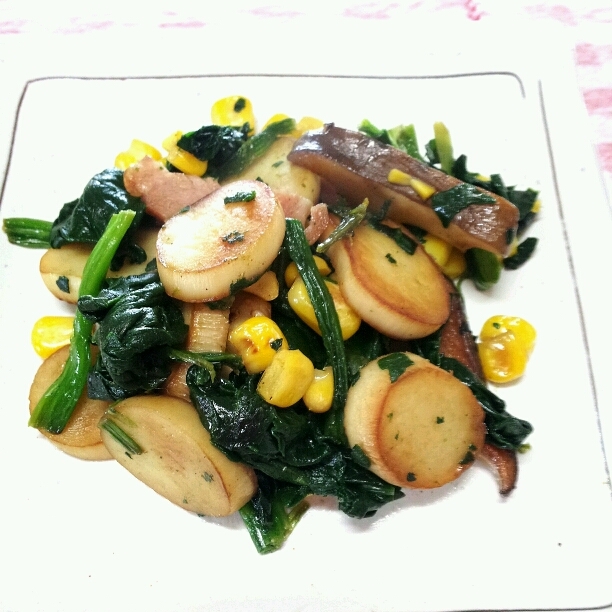 ベビー帆立とエリンギのほうれん草のソテー 家庭菜園 料理 Etc